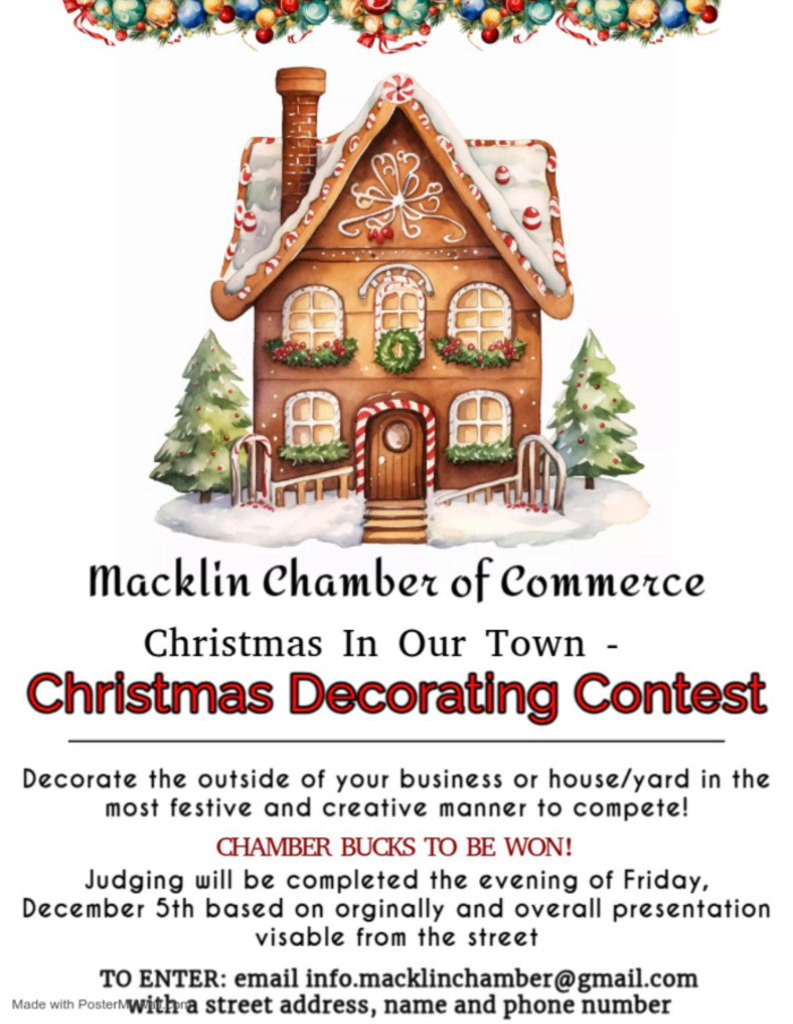 Chamber bucks to be won with decorating your house or business. Judging on December 5th based on originality and overall presentation.