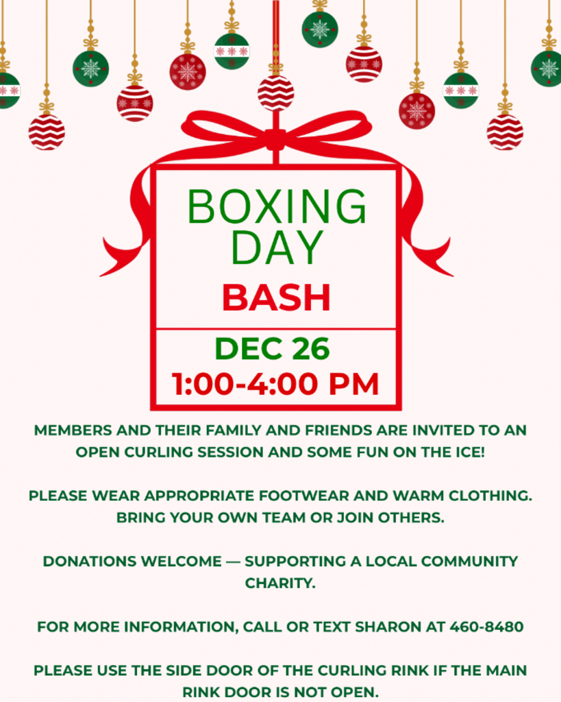 Members and their family and friends are invited to an OPEN curling session and some fun on the ice on Boxing Day!