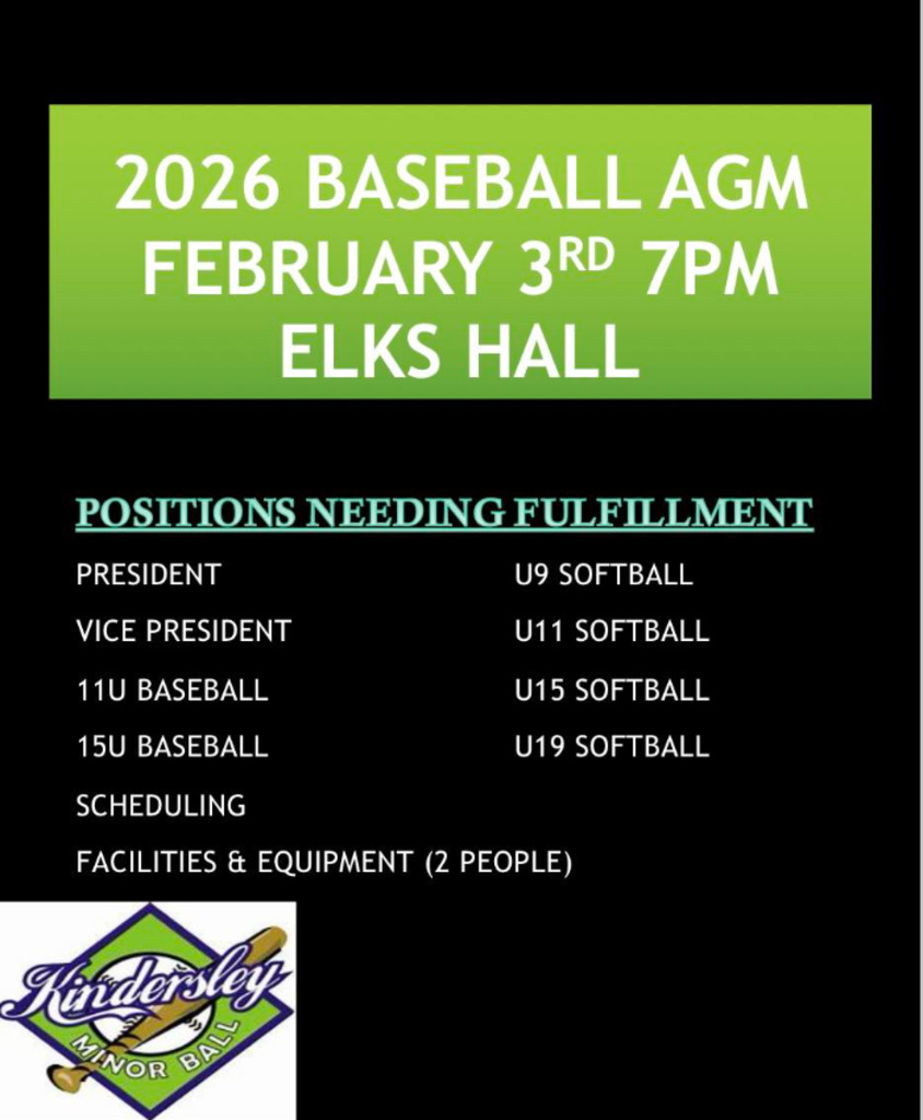 Please join us for our Annual General Meeting. The Kindersley Minor Ball Board is seeking applicants for the following: