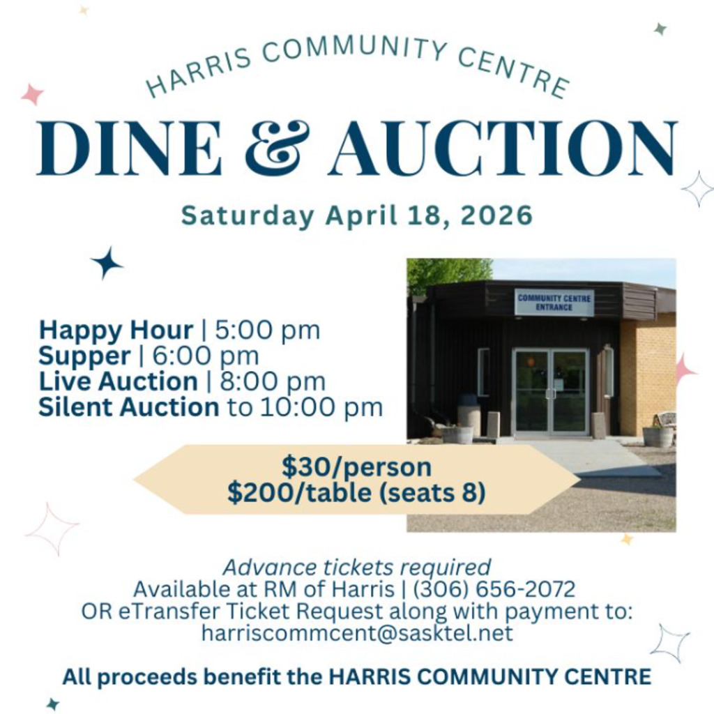 Tickets are now available for the Harris Community Centre Dine & Auction, happening Saturday April 18!